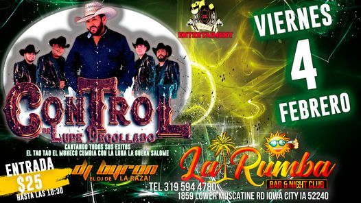 GRUPO CONTROL happening at La rumba night club iowa city 1859 LOWER MUSCATINE RD Iowa City IA 52240 Iowa City United States on Fri Feb 04 2022 at 0800 pm to Sat Feb 05 2022 at 0200 am.